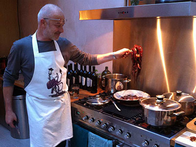 Italian artist Massimo Bartolini serves octopus cooked in red wine – from a recipe local to his home in the region of Livorno – to a small group of delighted guests.