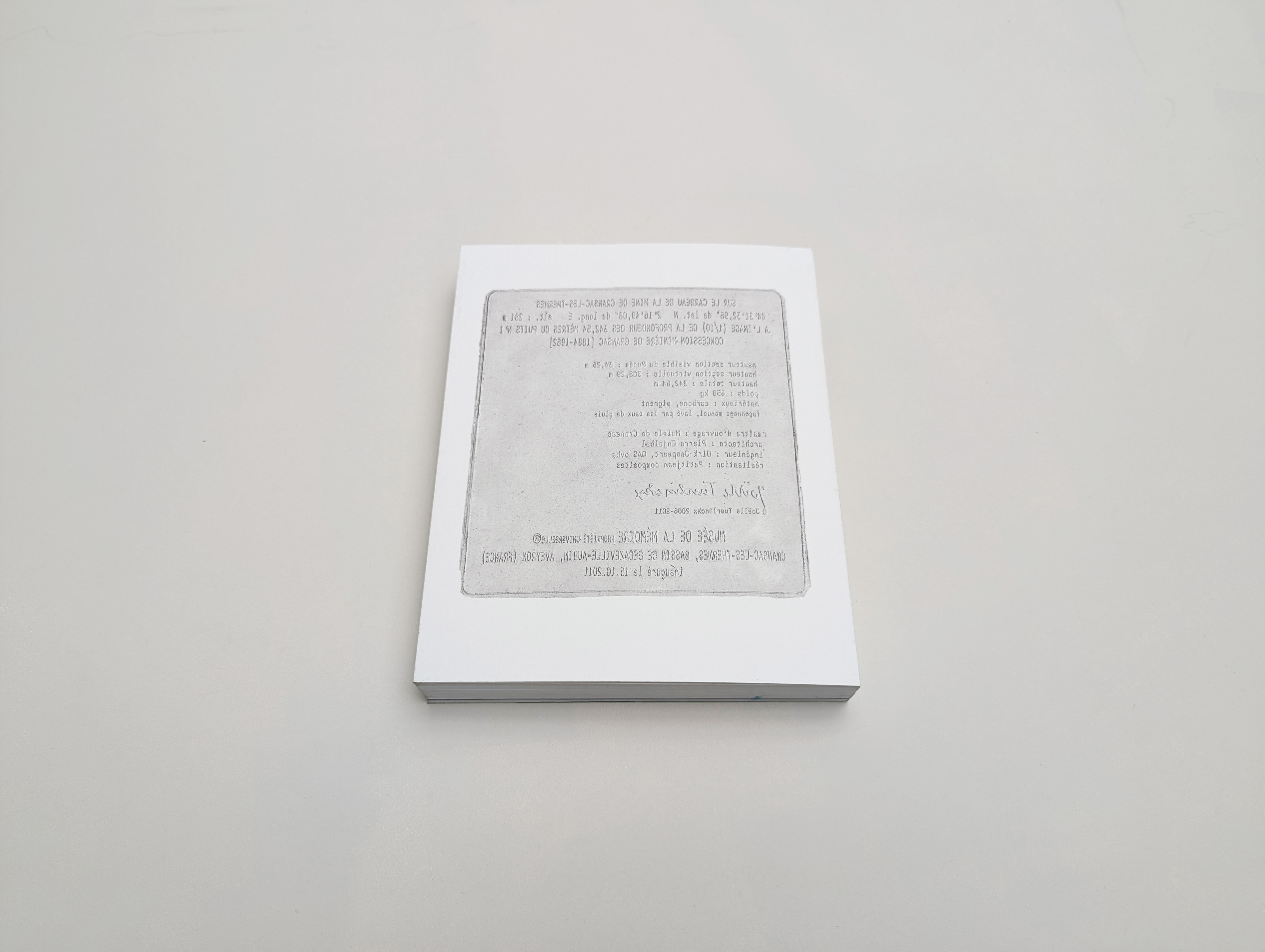 While the book is originally connected to "La Triangulaire de Cransac", a monumental work of art in the small town of Aveyron, it also puts into perspective the evolution of the museum in its relationship with the artist and the book. Joëlle Tuerlinckx reminds us that if the museum is compared to a book because of its internal organisation, then a book can be compared to a museum because of its systematics and its method of contemplating the object.