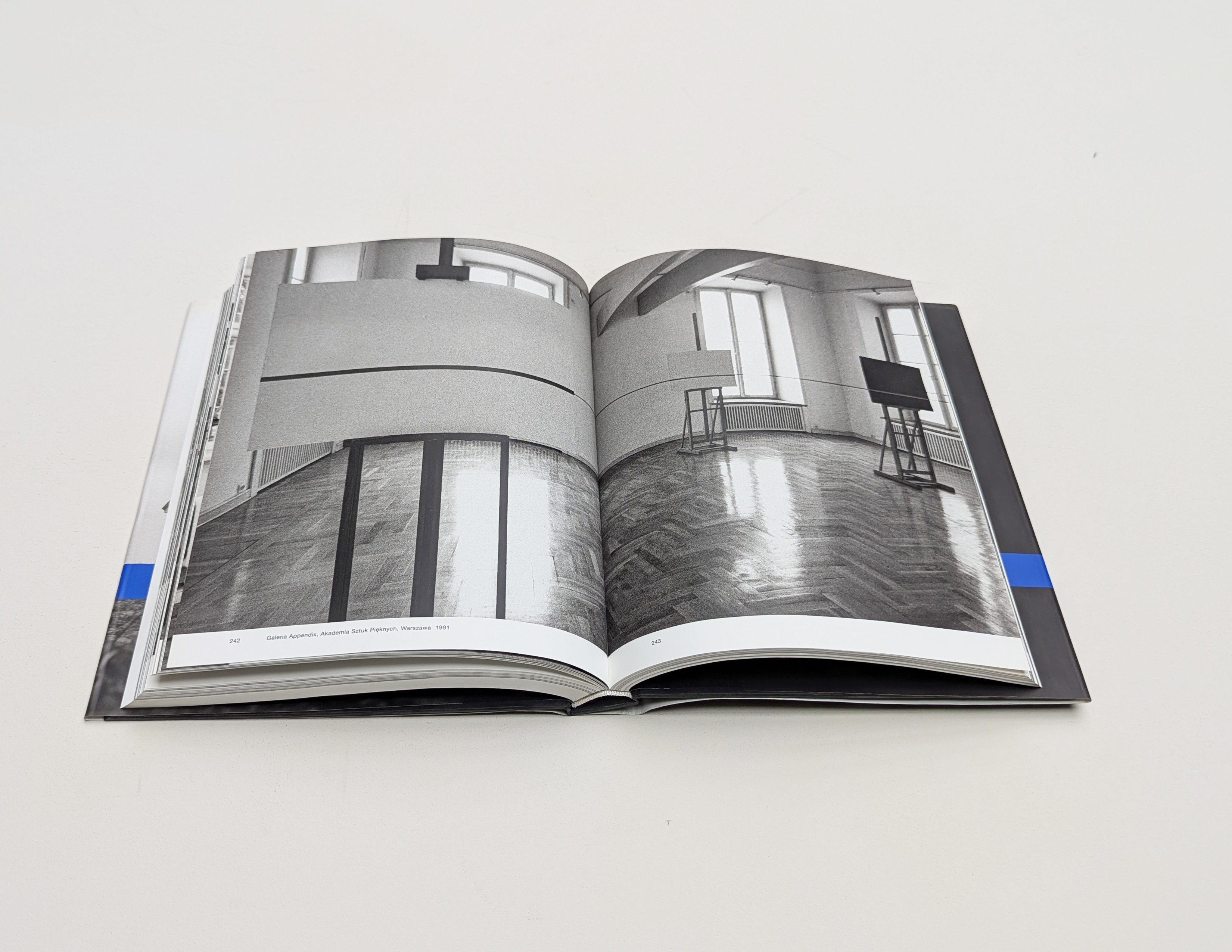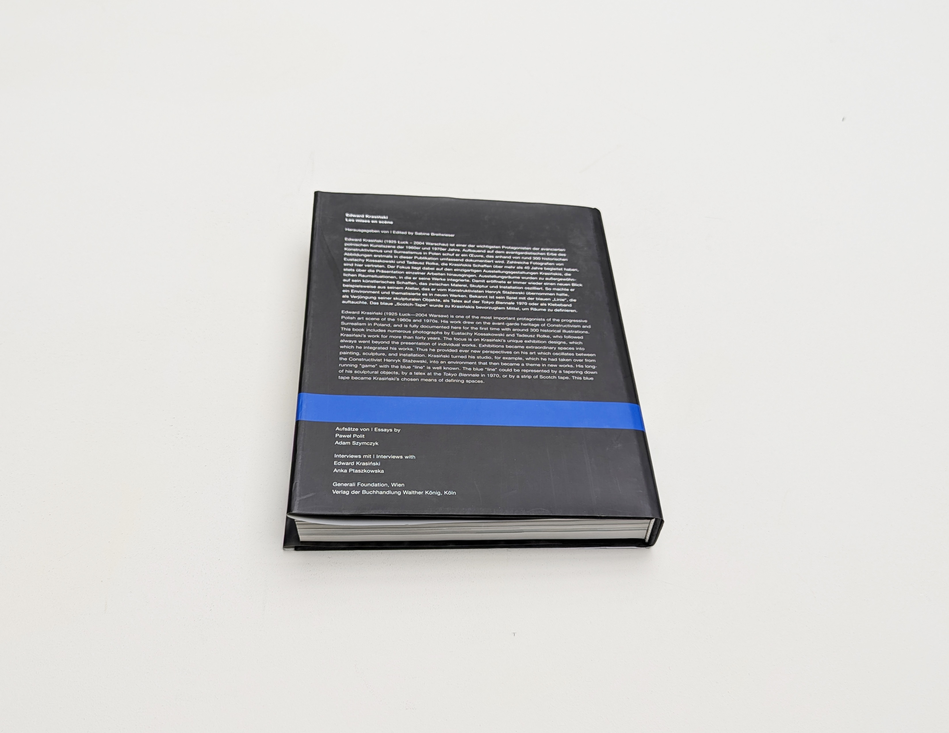 The focus is on Krasiński's unique exhibition designs, which always went beyond the presentation of individual works. Exhibitions became extraordinary spaces into which he integrated his works. Krasiński turned his studio, for example, which he had taken over from the constructivist Henryk Stażewski, into an environment that then became a theme in new works. His long-running “game” with the blue “line” is well known. The blue “line” could be represented by a tapering down of his sculptural objects, by a telex at the Tokyo Biennale in 1970, or by a strip of Scotch tape. This blue tape became Krasiński's chosen means of defining spaces.