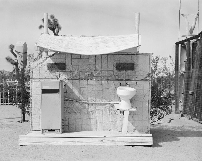 ‘As a traveller from another history and a different continent, when I came across Noah Purifoy’s sculptures spread across the desert, I felt like an explorer encountering the ruins from another time and place. By recycling found materials he created visual references that stretched back to his childhood — the shacks, churches and graveyards of the South, the trains that went west, the segregated washrooms and buses, the yard-sales, and burnt down buildings left by the Watt’s rebellion. As morning light rose some structures appeared to float. At mid-day the lack of shelter and the harshness of the scene heightened the polarity of black and white in the structures. When light fell the shacks appeared to dissolve into the distance.’
