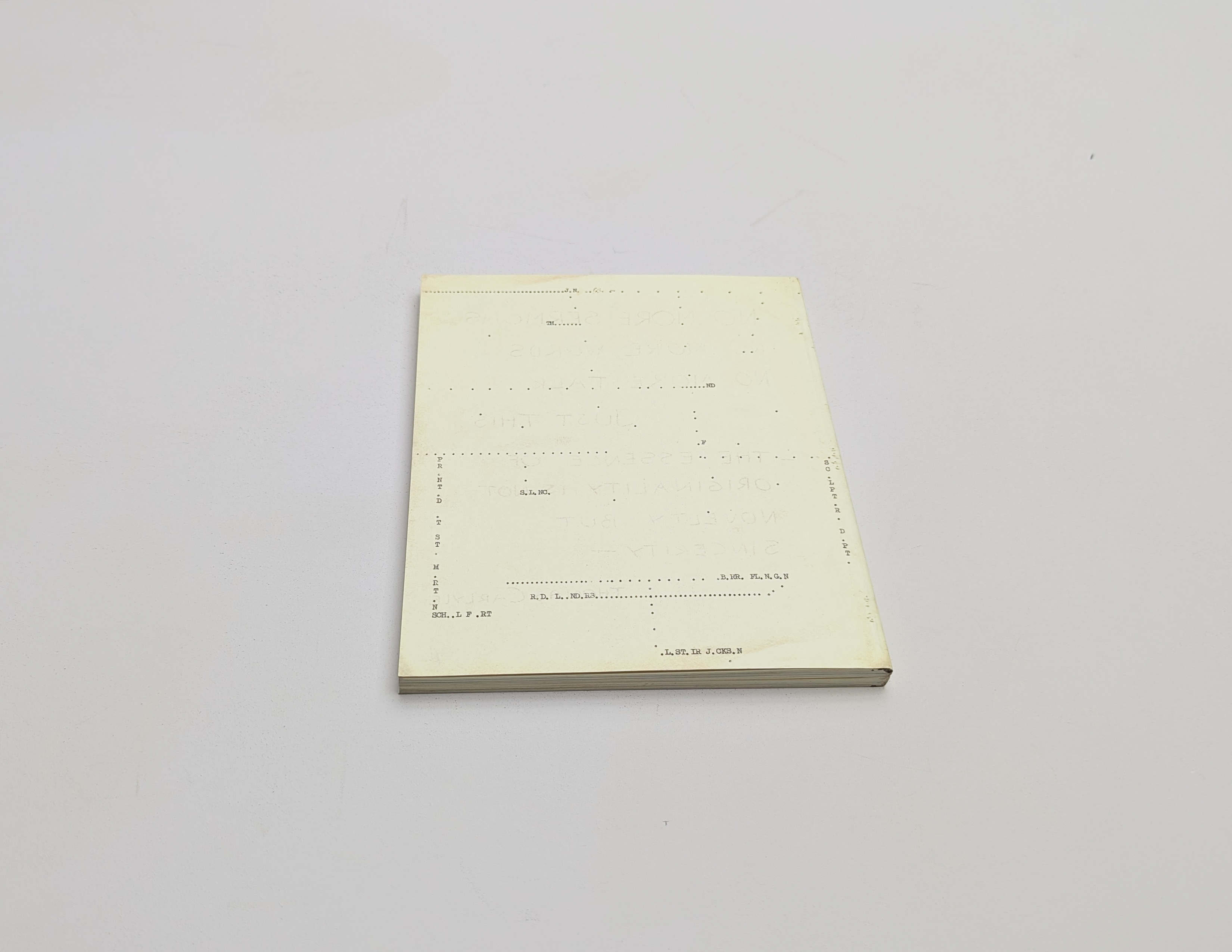 This is a facsimile publication of Barry Flanagans student magazine Silans produced at St Martins School of Art. The publication comes at a time of renewed interest in the connectivity between visual practices and language, the development of concrete poetry and artist led magazines. When Flanagan enrolled in the Advanced Sculpture course at St Martins School of Art in 1964 he joined a department with a strong interest in experimentation and enquiry. He co edited the magazine with colleagues Alistair Jackson and Rudy Leenders, negotiating with administration staff to use the office cyclostyle to produce the publication.